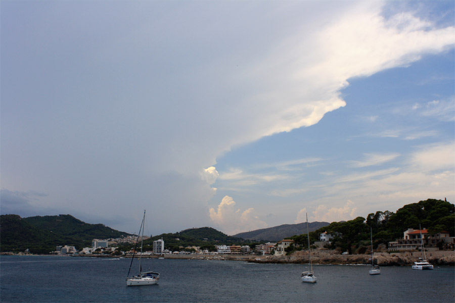 Ein wenig anstrengend war vor allem das Wetter. Auch wenn es in Berlin gleich heiß oder gar wärmer war, war die hohe Luftfeuchtigkeit mit bis zu 80% unangenehm. Das hat dann auch die Outdoor-Aktivitäten etwas gebremst. Bis auf die üblichen Wanderungen zur Cala Mesquida, L’Olla und Font de Sa Cala waren sonst vor Ort nur noch ausgiebiges Tauchen bei MERO angesagt. In der zweiten Urlaubshälfte war das Wetter ein wenig gewittrig, so hat uns ein lokales Gewitter nach gut 1.5 Stunden vom Strand in Son Serra de Marina vertrieben. Eine Gewitterfront brachte dann zur zweiten Urlaubshälfte die Abkühlung auf Temperaturen +/- 30°C. Ab da konnten wir dann auch nachts wieder Schlafen, ohne in der eigenen Brühe zu schmoren *lach*